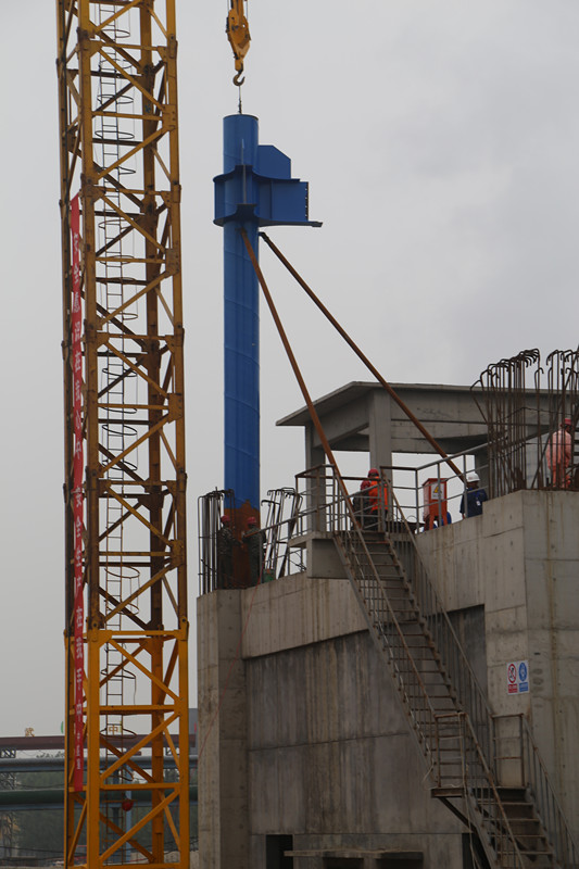 6月6日上午8时18分,金威水泥公司2500t/d熟料新型干法生产线窑尾预热器框架第一根立柱顺利吊装成功,标志着熟料水泥生产线及安装工程的全面推进。