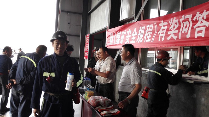 为落实"安全生产月活动",检验新《煤矿安全规程》学习贯彻效果,进一步激发职工学规程、用规程的热情,6月21日,亿隆项目部安监部在副井口开展了新《煤矿安全规程》有奖知识问答活动。