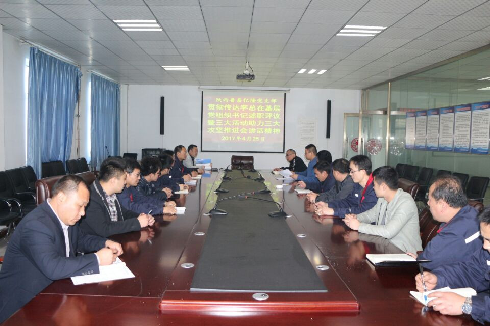 4月25日,陕西半岛.体育(bandao.tiyu)官方网站党总支结合"两学一做"学习教育,组织各党支部认真学习集团公司基层党组织书记述职评议暨"三大活动"、助力"三大攻坚"推进会精神。