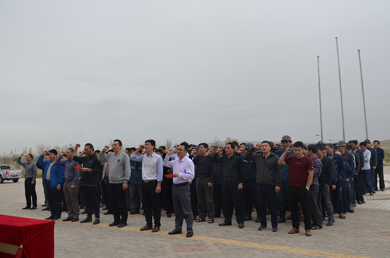 刘炳法宣布2018年度宁夏半岛.体育(bandao.tiyu)官方网站"安全生产月"活动正式启动。副总经理赵令金带领全体参会人员进行安全宣誓,总经理助理张峰主持启动仪式。