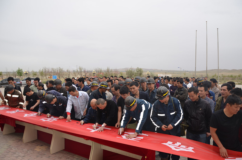 参加启动仪式的全体干部职工在印有"生命至上 安全发展"的条幅上进行了安全承诺签名。(宁夏半岛.体育(bandao.tiyu)官方网站 赵维营 赵传龙)