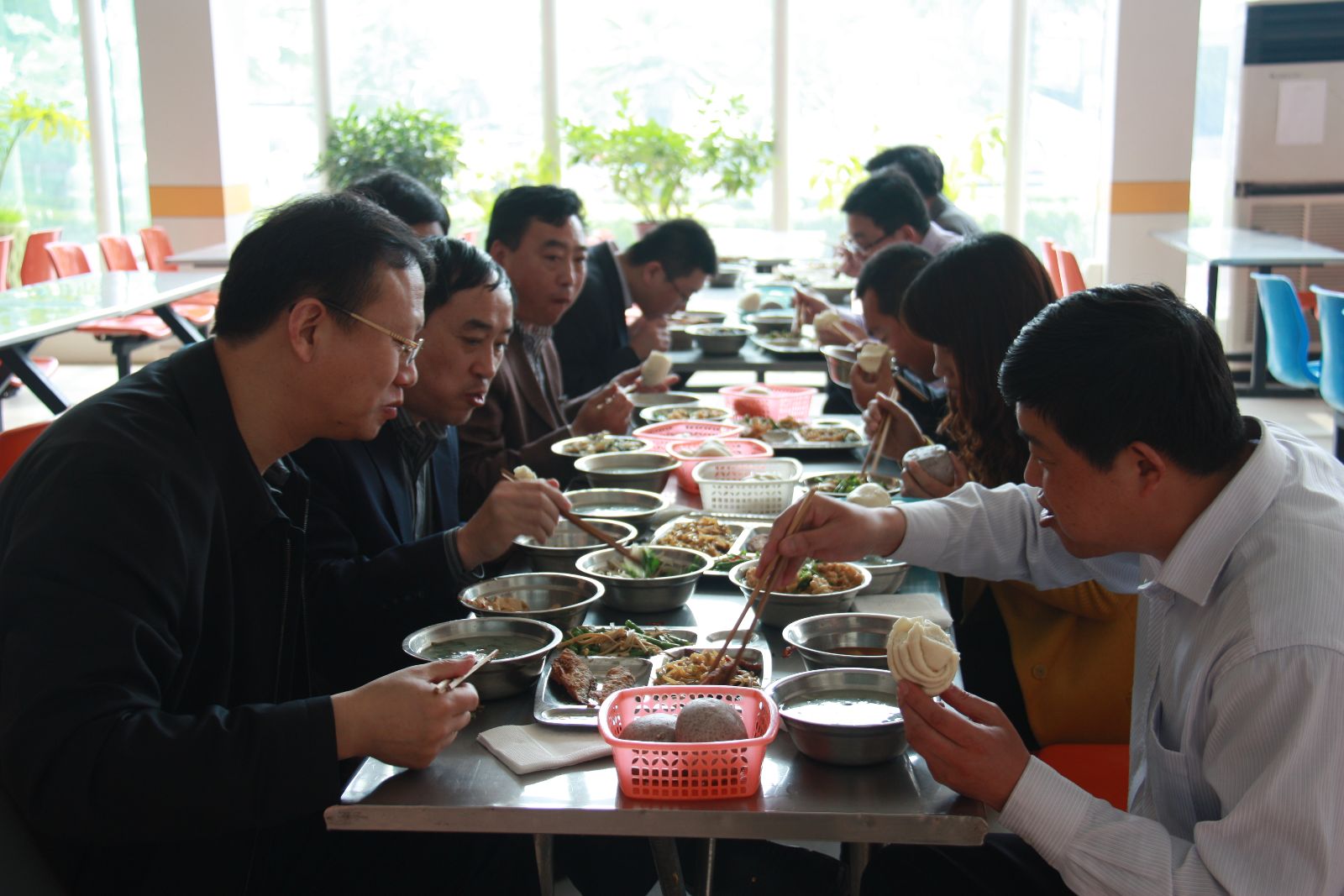 座谈结束后,李合军来到职工食堂,跟大家一样拿起餐盘,打好饭菜,同职工们一起用餐。他边吃边同运转工区职工李娟、采一工区班组长付贵波、皮带工区区长陈宗桥进行了交谈,详细了解他们的生活、工作、思想等情况。