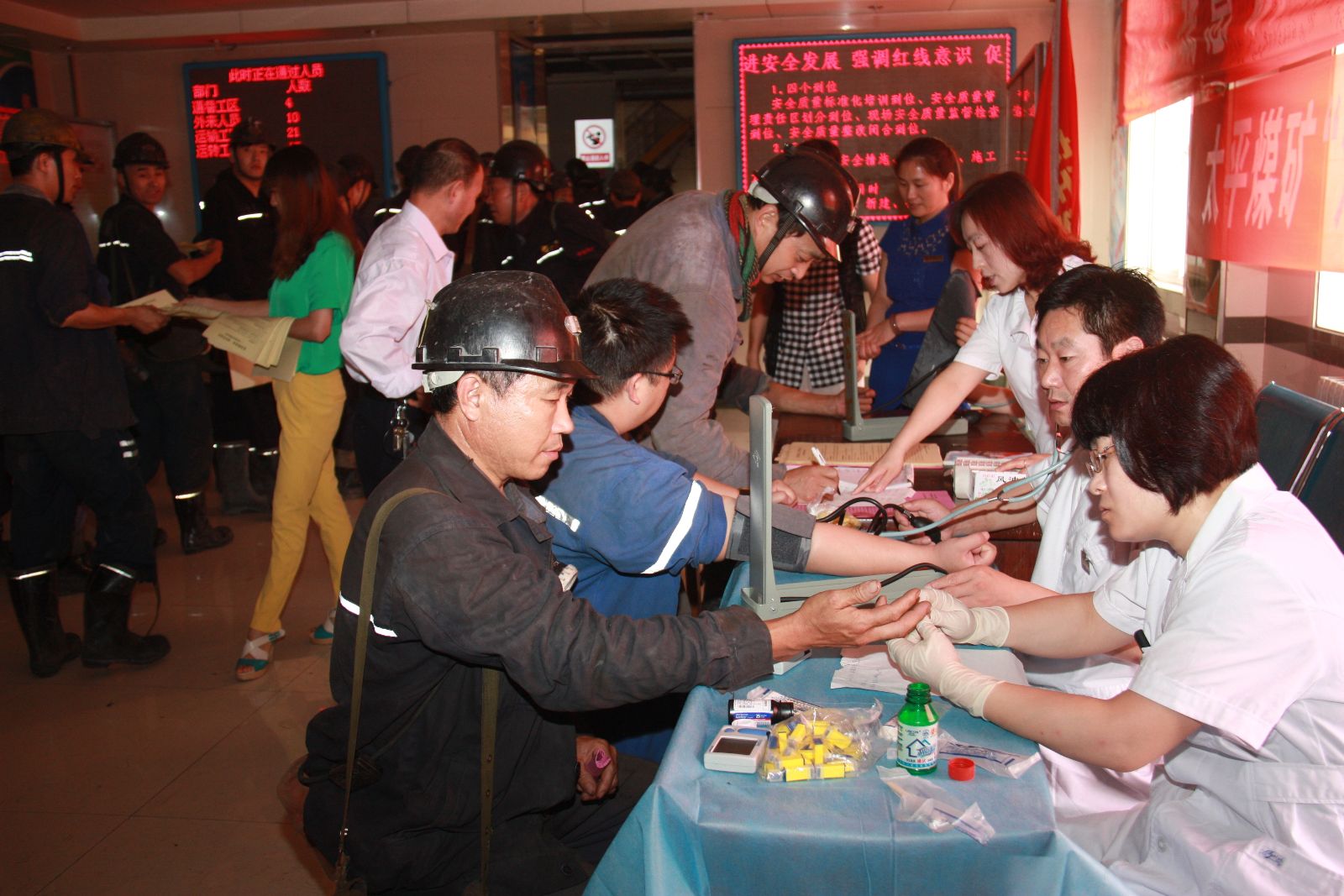 6月23日-24日,太平煤矿卫生所、团委、工会联合组织开展了以"清凉防暑 安全度夏" 为主题的矿工义诊活动。活动中,矿卫生所医生为一线职工量血压、免费测血糖,提供耐心细致的健康咨询服务,向职工有针对性地提出诊疗方案和健康注意事项,传授健康知识,发放职业病防治健康宣传资料,并就如何搞好日常保健提出许多宝贵建议。此外,矿卫生所还专门购进了风油精、清凉油、藿香正气水等防暑消夏用品分发给每位职工。