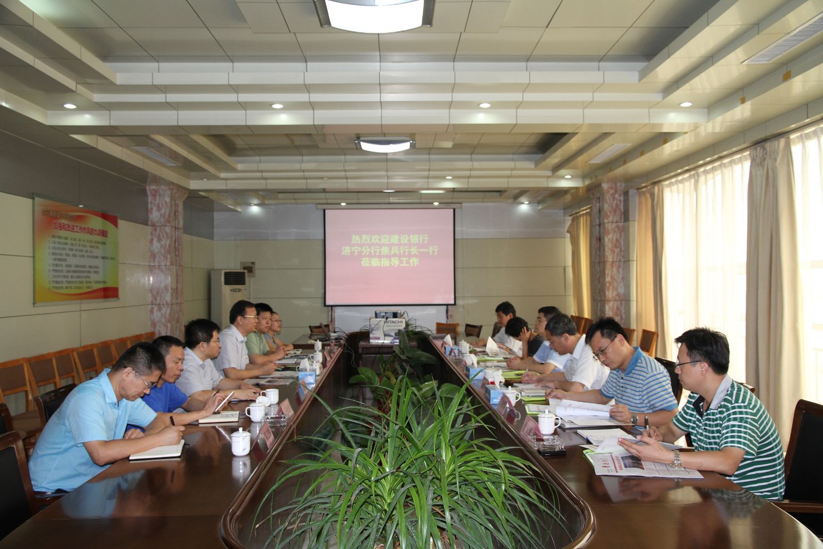 建设银行济宁分行副行长刘伯乐、公司部总经理赵丽霞、同行部总经理宋红伟、高新支行行长杨建军、高新支行副行长李安霞和公司财务部、规划发展部、办公室负责人参加座谈交流。