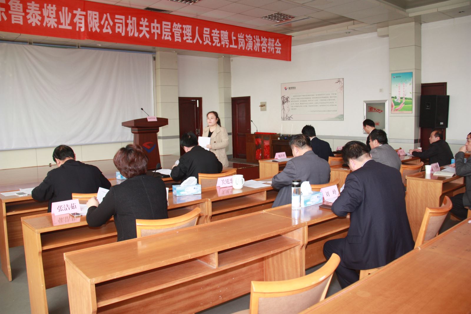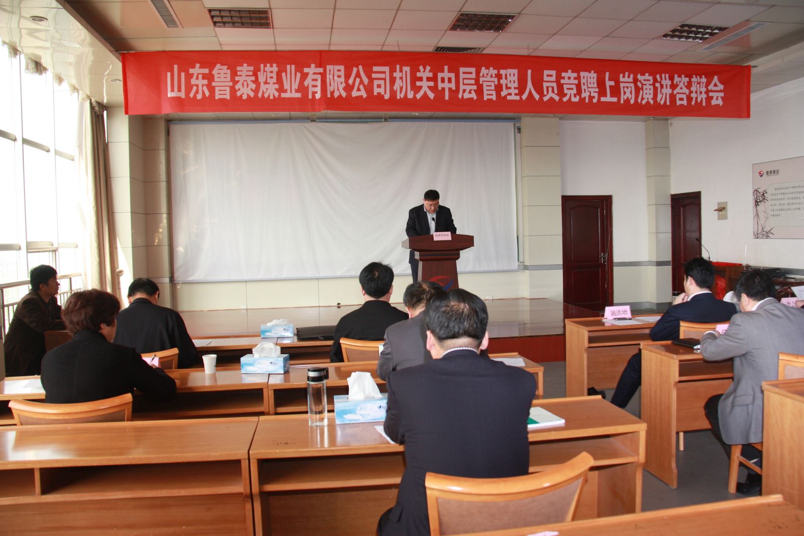 4月20日,公司下发《机关中层管理人员竞聘上岗工作实施方案》。20日,下午4:30,公司机关召开动员会,副总经理薛培华传达《竞聘方案》,公司总经理李合军作动员讲话。李合军指出,公司机关中层管理职位竞聘上岗,是贯彻落实市委、市政府和市国资委的指示要求。2013年6月,市委书记马平昌同志在到济宁能源调研时,对济矿集团机关中层管理人员全员下岗、全员竞聘上岗的做法,给予充分肯定,并要求市管企业学习借鉴。市委常委、常务副市长、市国资委党委书记刘中会同志在2014年3月市管企业县级国资监管机构负责人会议上,指出"要完善经营管理人才激励机制。以聘任制、任期制和经营目标责任制为主要内容,逐步对企业领导人员实行契约化管理,严格任期管理和目标考核,建立能上能下、能进能出的机制。推进企业领导人员选任方式与现代企业制度接轨,逐步提高市场化选聘比例,通过组织选拔、公开招聘、竞争上岗等多种方式,真正把优秀人才选出来、用起来。"市国资委曹旭东主任在市管企业县级国资监管机构负责人会议上,指出要"继续深化企业人事制度改革。全面推行企业各级管理人员聘任制、任期制,逐步加大企业管理人员竞争性市场化选聘力度。"根据市委、市政府和市国资委的要求,公司对企业行政主要负责人进行了竞聘上岗。这次公司对机关中层管理职位进行竞聘上岗,既是上级领导的指示要求,也是公司度危求进、应对严峻经济形势而作出的重要决策。李合军希望符合竞聘条件的人员积极报名参加竞聘。公司各企业分别召开动员会,对竞聘工作进行了广泛动员。截止到4月21日报名截止时间,共有67名同志报名应聘。4月22日上午,公司召开党政联席会,对报名者进行资格审查,符合竞聘条件的有57名同志。资格审查结束后,进行了公开推荐。市国资委企业领导人员管理科(党委组织部)马新华科长(部长)、毛莹等到会监督指导公开推荐。