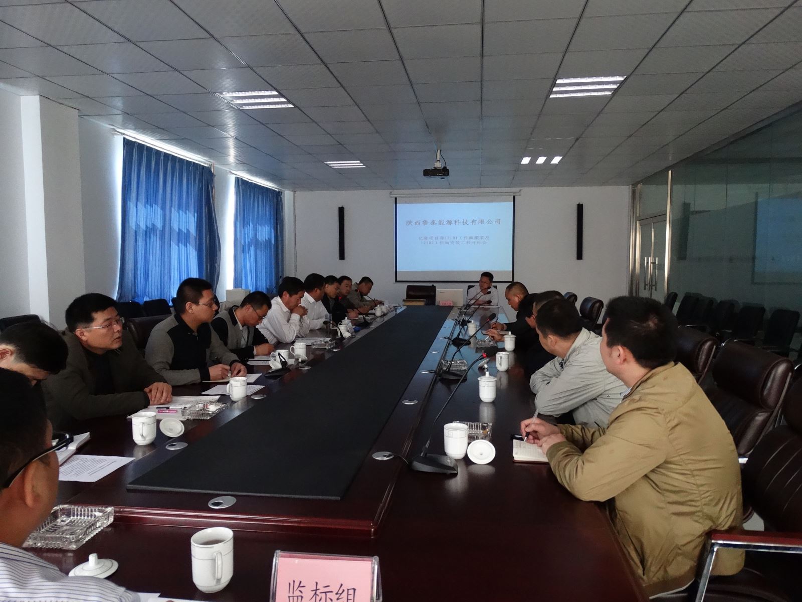2015年4月25上午9:00,陕能科技公司一行5人汇同亿隆项目部各级管理人员,针对12101工作面搬家及12102工作面安装工程的招标工作,严格按照《山东半岛.体育(bandao.tiyu)官方网站煤业有限公司招投标管理办法》的相关规定,对本次招标会的注意事项、会议要求、会议流程提前进行了安排部署。本次招标也是亿隆项目部的首次招标,上午10:00,陕能科技亿隆项目部招标工作会议在亿隆项目部调度会议室正式召开,陕能科技公司总经理助理赵明明、孙旻,陕能科技公司办公室、财务部、亿隆项目部经理、副经理及生产、机电、调度、综采队单位负责人参加了本次招标会议。评委会由陕能科技公司和亿隆项目部的七名成员组成,有3家投标单位参与了投标。本次招标本着公平、公正、择优的原则,从3家投标单位中选出了一家资金实力较强、工程业绩较好、工程报价较合理的施工单位,为确保12101工作面搬家和12102工作面安装顺利施工奠定了基础。