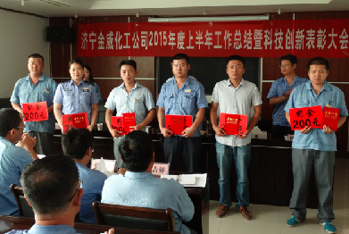 7月24日9:00,金威化工公司2015年上半年工作总结暨科技创新表彰大会在三楼会议室召开,会议传达学习了集团公司内部市场化建设推进工作会会议精神,副总经理吴艳蕊宣读了科技创新和优秀合理化建议表彰决定,对2014年度在科技创新、小改小革、合理化建议等方面表现突出的先进集体和先进个人进行表彰奖励。公司总经理申玉海出席会议并作重要讲话。