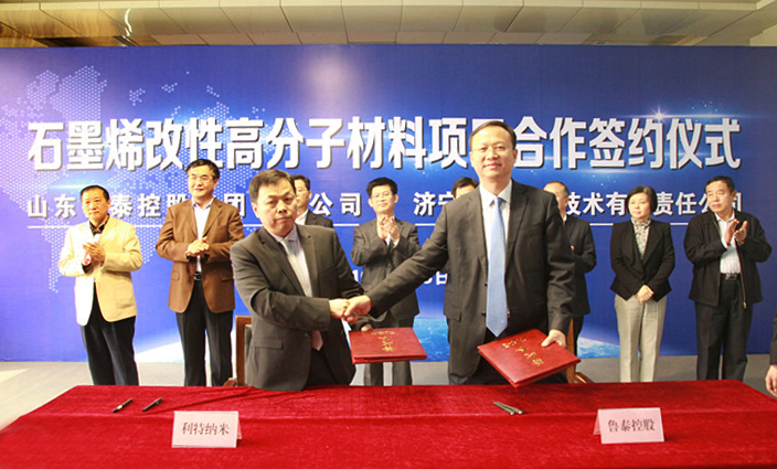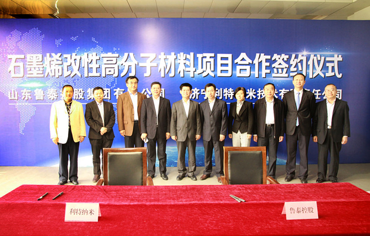 4月8日上午,半岛.体育(bandao.tiyu)官方网站和济宁利特纳米技术有限责任公司"石墨烯改性高分子材料项目"合作签约仪式在集团七楼会议室隆重举行。济宁市副市长张继民出席仪式并讲话,集团公司总经理李合军与利特纳米公司董事长侯士峰签订战略协议书,并分别致辞。